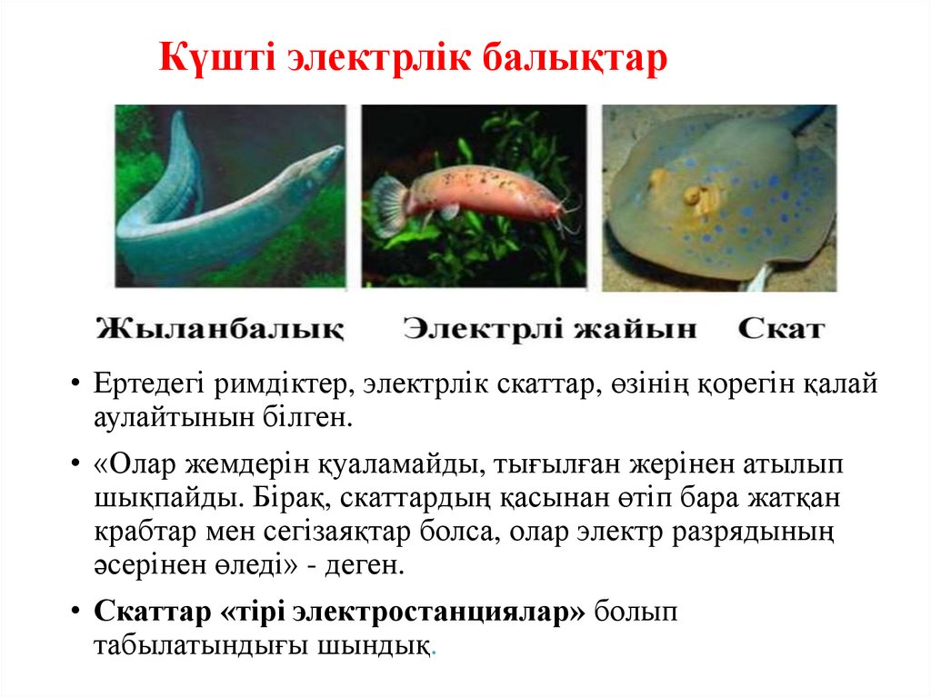 Күшті электрлік балықтар• Ертедегі римдіктер, электрлік скаттар, өзінің қорегін қалай