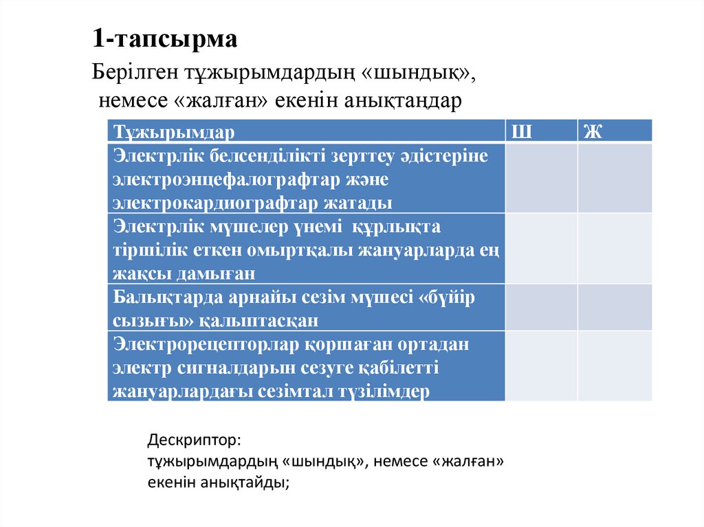 Берілген тұжырымдардың «шындық»,немесе «жалған» екенін анықтаңдар