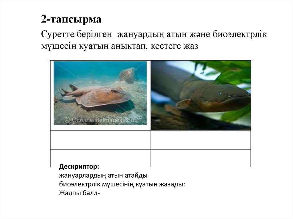 2-тапсырмаСуретте берілген жануардың атын және биоэлектрлік