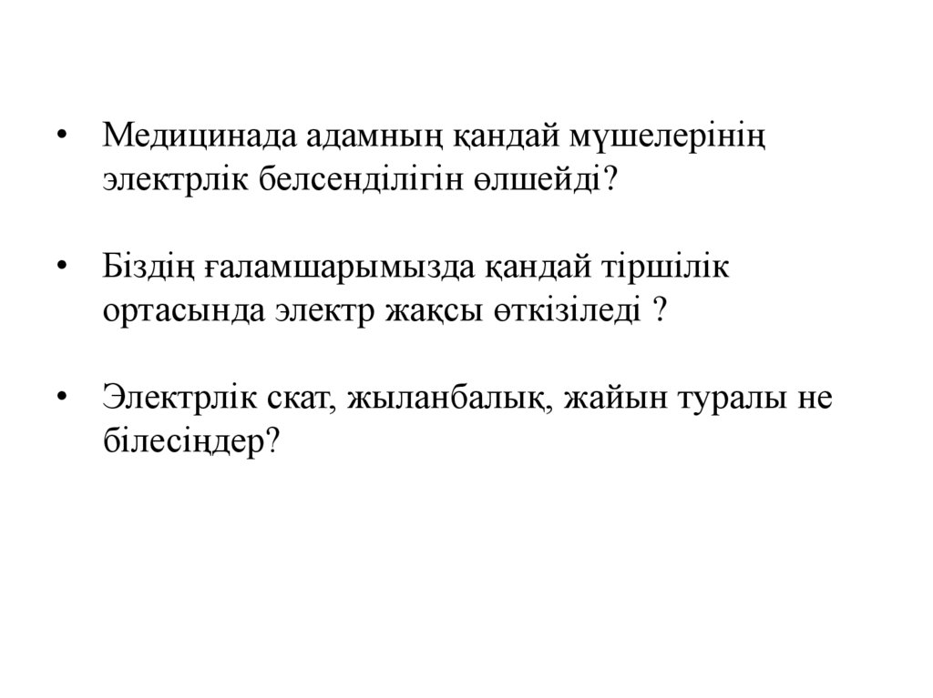 Электрлік құбылыстардың тірі ағзалардағырөлі