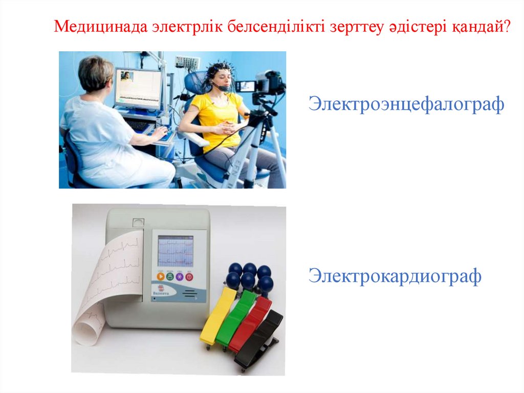 • Медицинада адамның қандай мүшелерініңэлектрлік белсенділігін өлшейді?