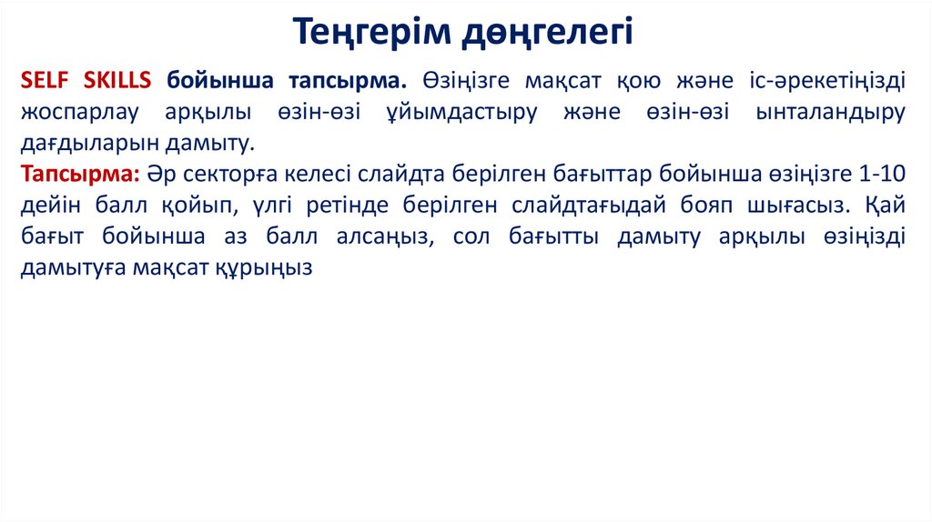 SELF SKILLS бойынша тапсырма. Өзіңізге мақсат қою және іс-әрекетіңіздіжоспарлау арқылы өзін-өзі ұйымдастыру және өзін-өзі ынталандыру