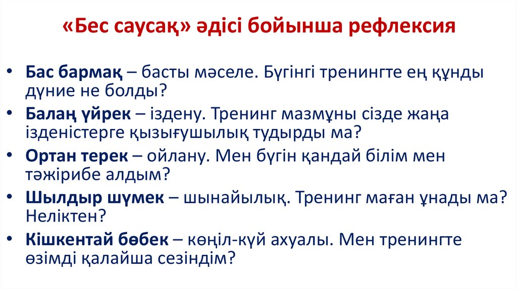 10. «Бес саусақ» әдісі бойынша рефлексия