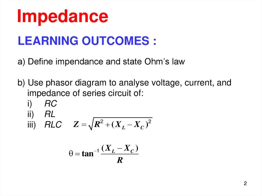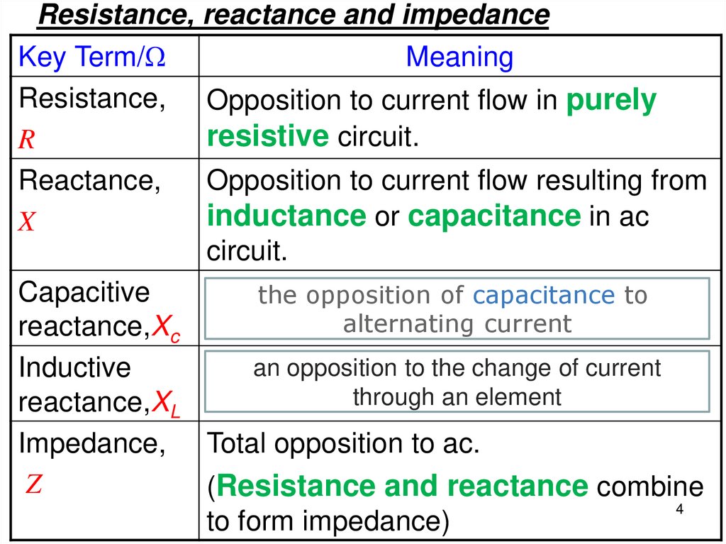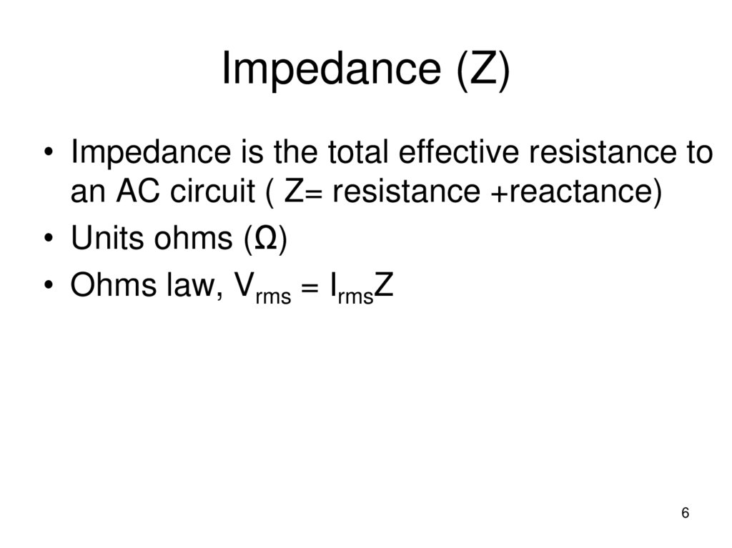 • Impedance is the total effective resistance toan AC circuit ( Z= resistance +reactance)