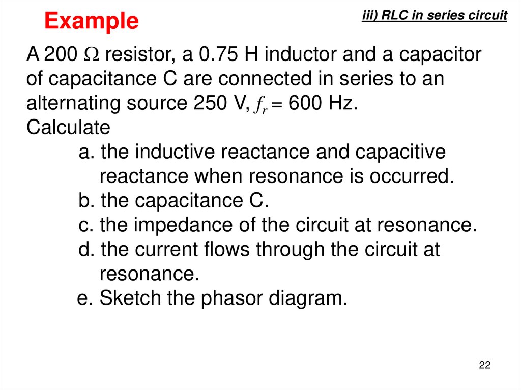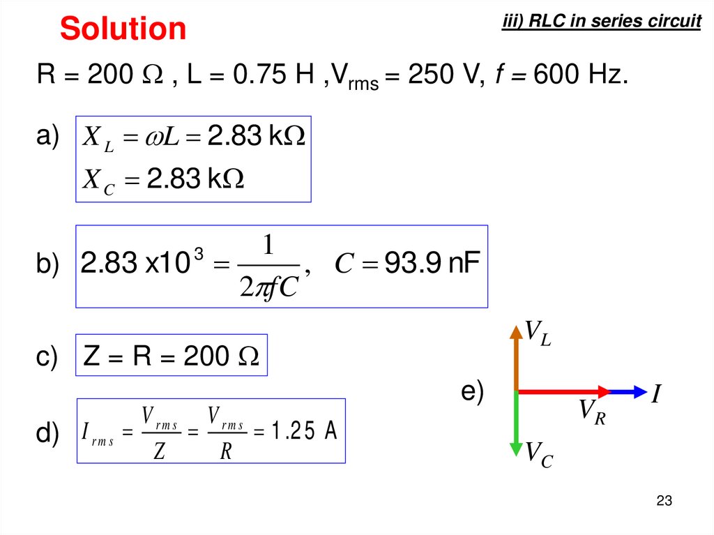 R = 200 , L = 0.75 H ,Vrms = 250 V, f = 600 Hz.