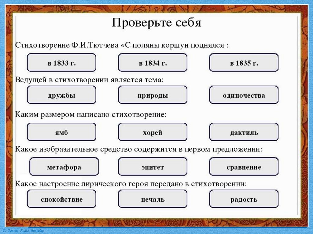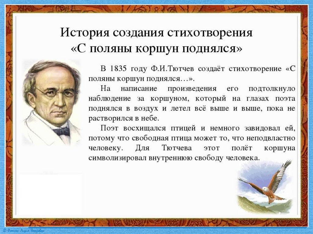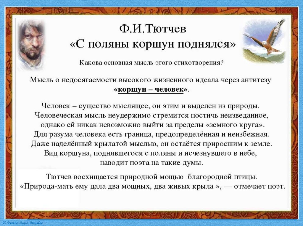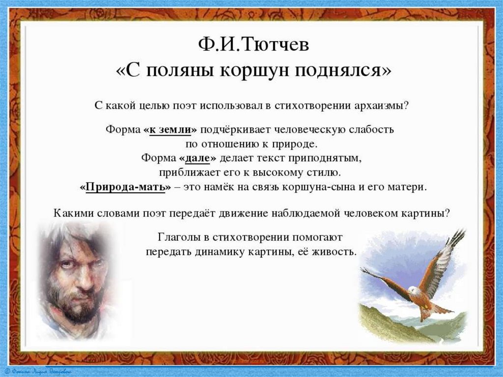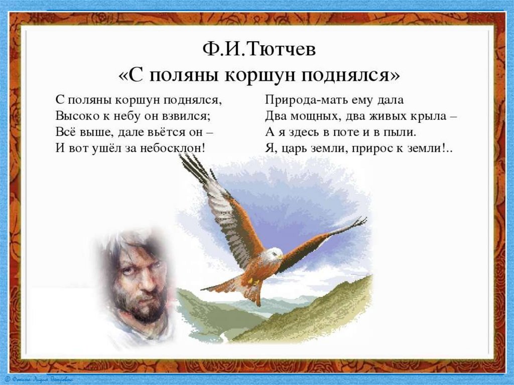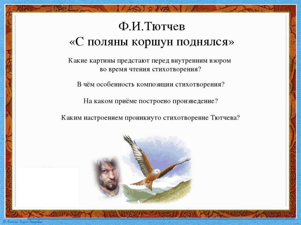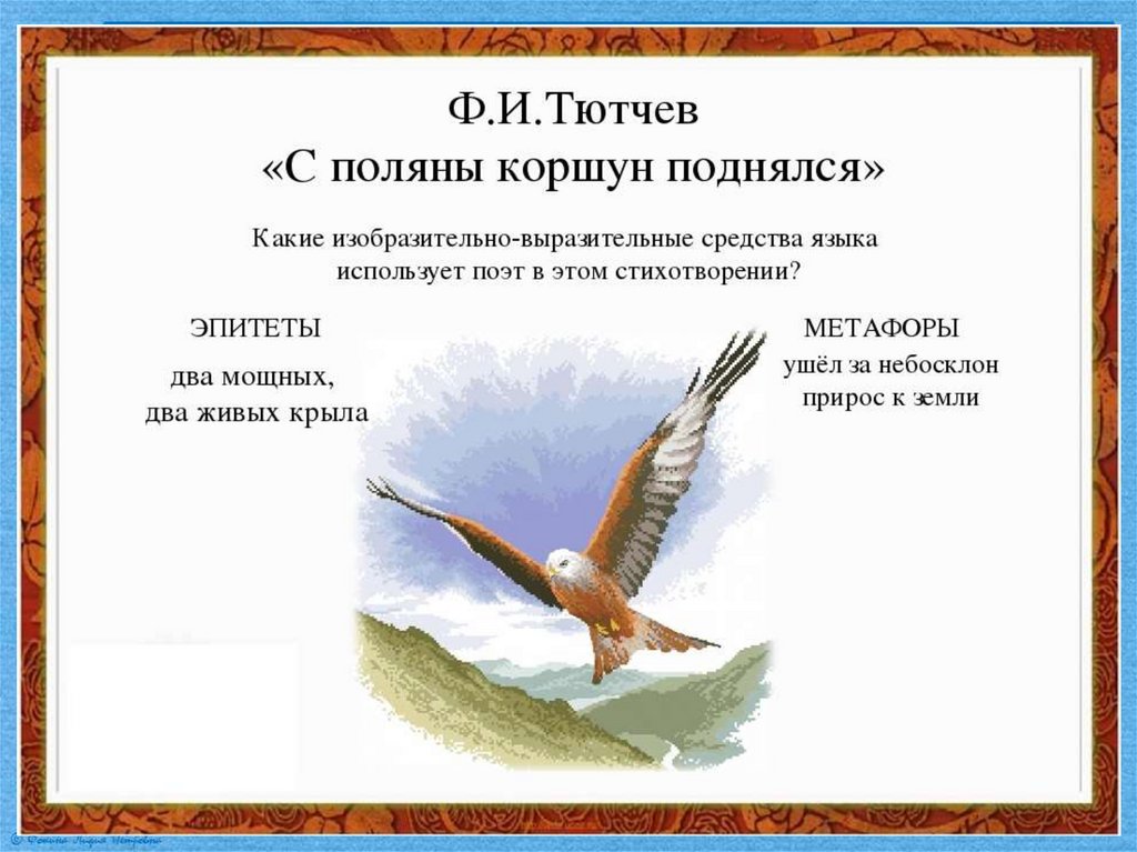 Презентация по русскому языку на тему _Анализ стихотворения Ф.И.Тютчева _С поляны коршун поднялся__ (6 класс)