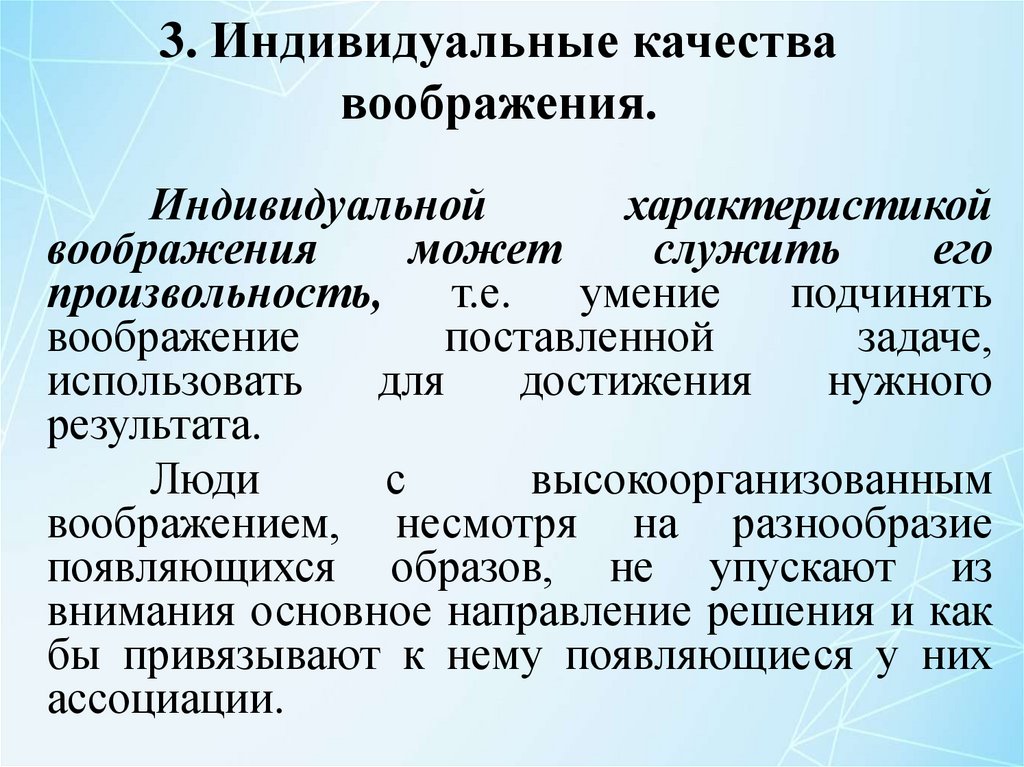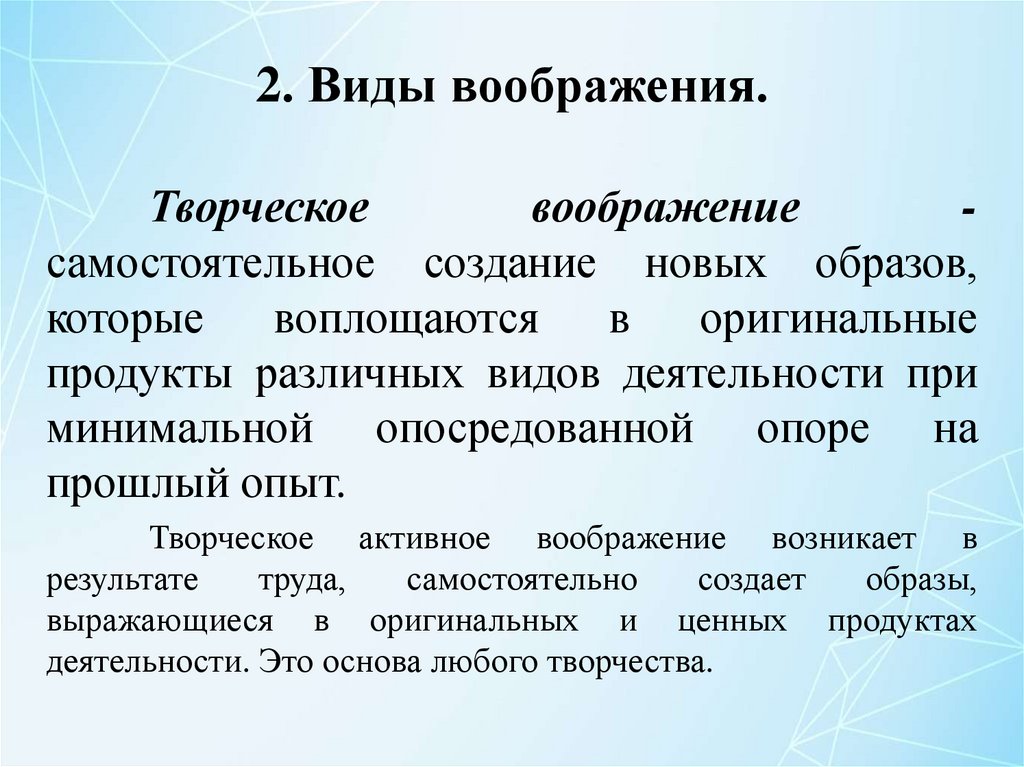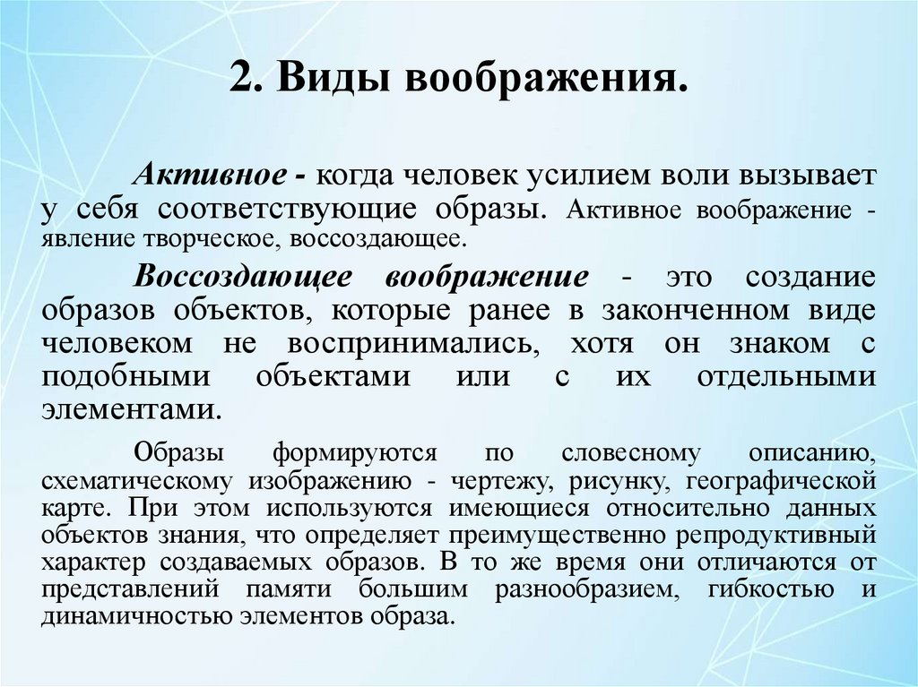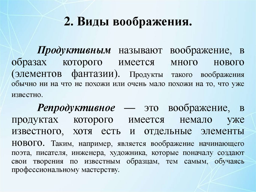 Продуктивным называют воображение, вобразах которого имеется много нового