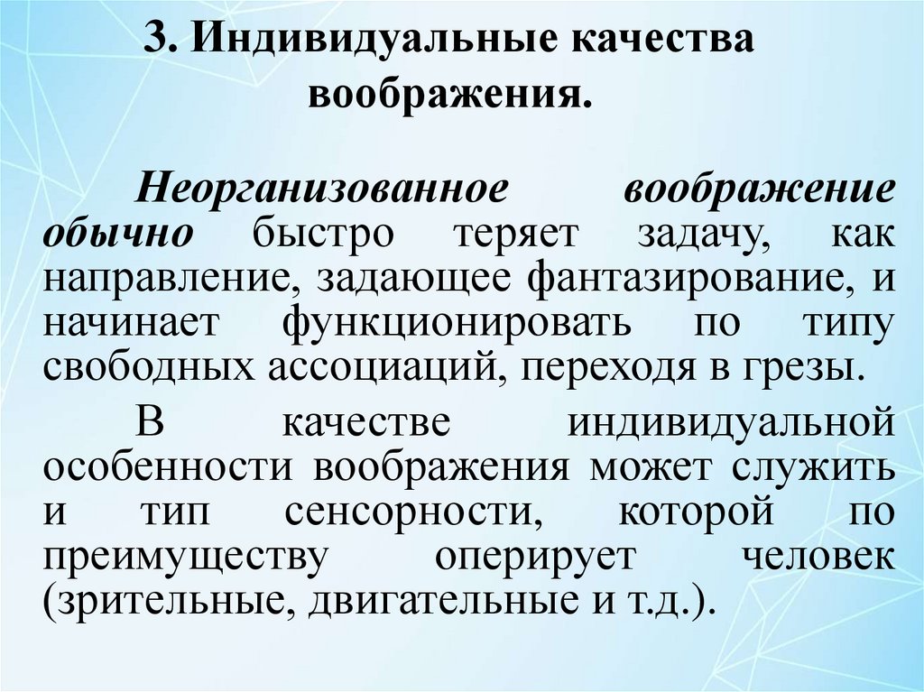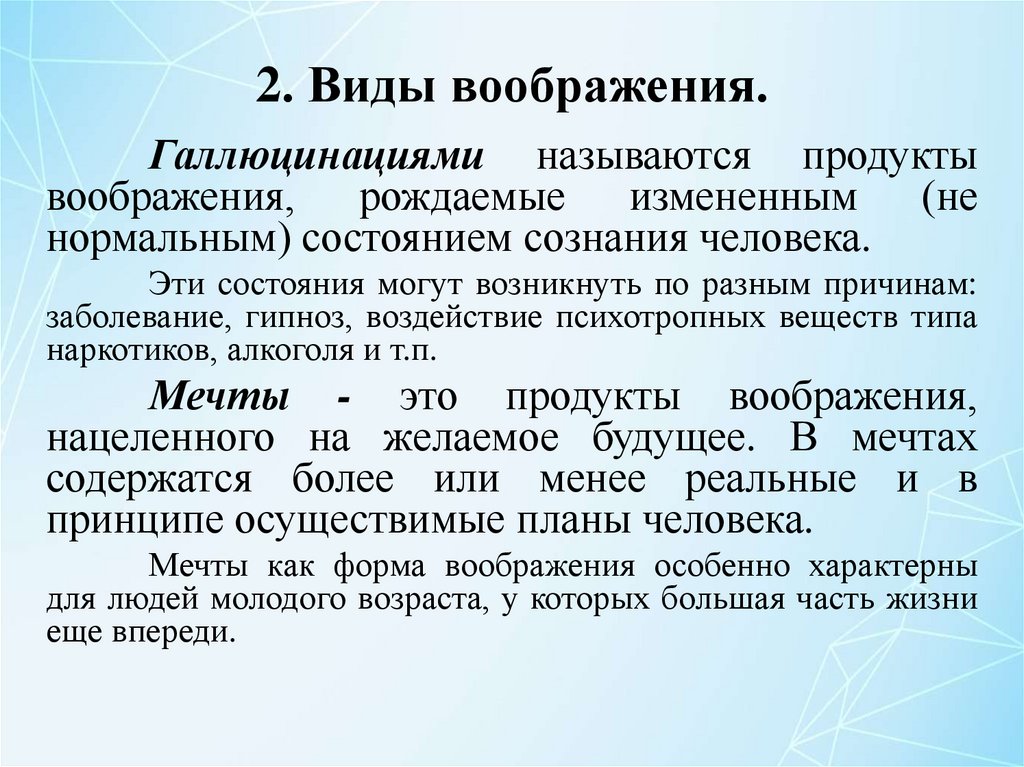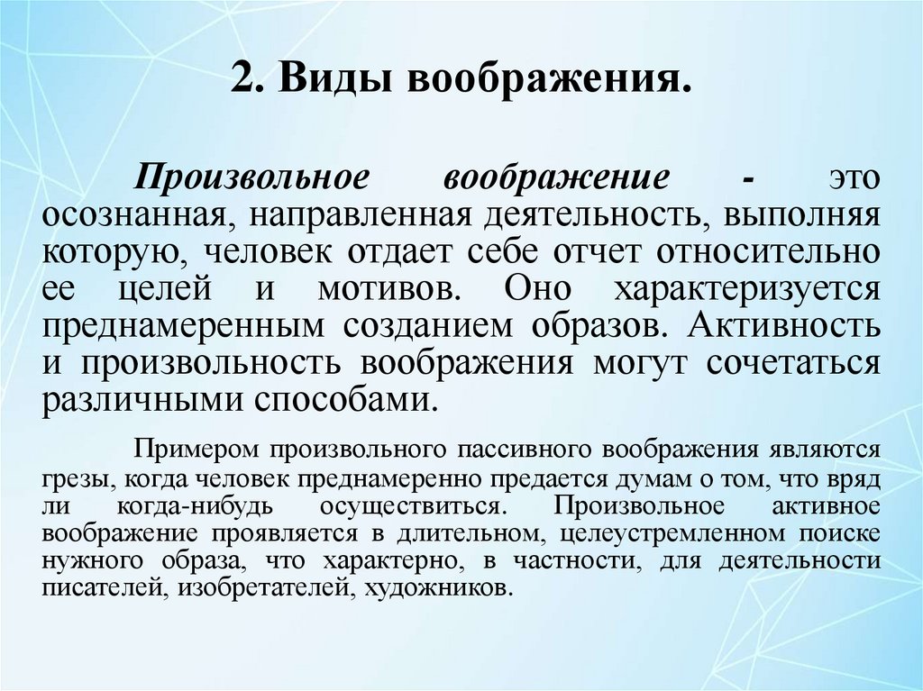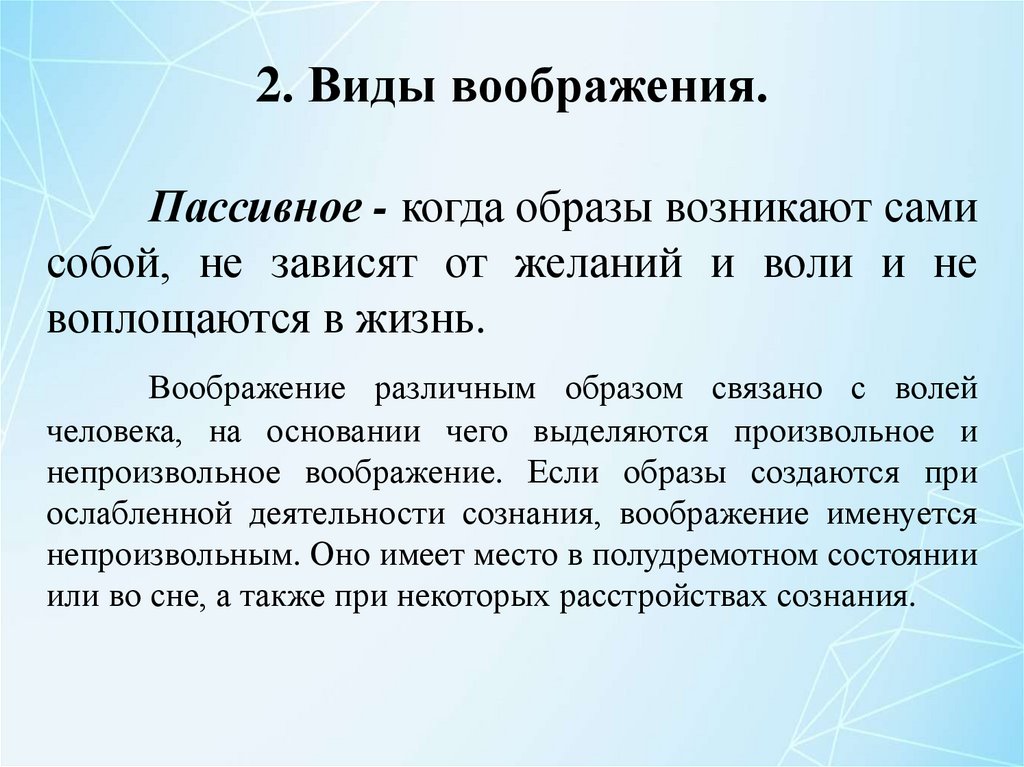 Продуктивным называют воображение, вобразах которого имеется много нового
