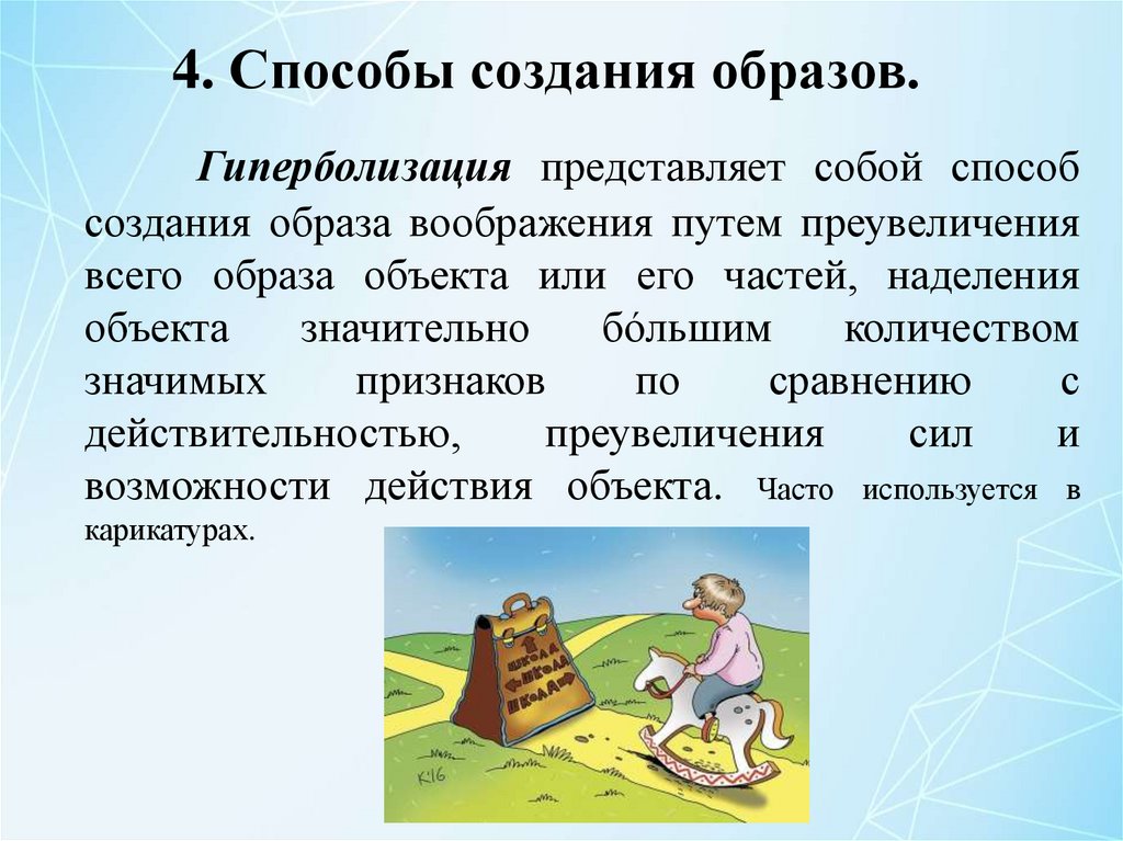 Гиперболизация представляет собой способсоздания образа воображения путем преувеличения