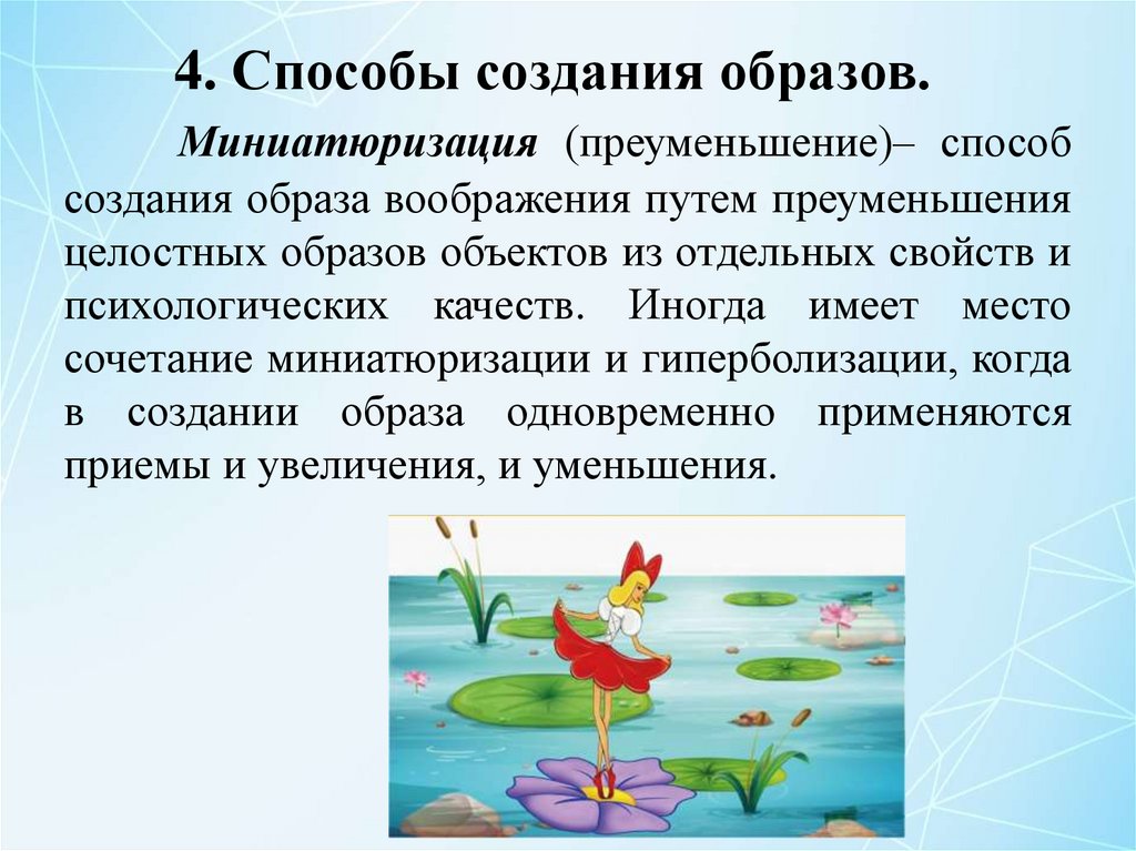 Миниатюризация (преуменьшение)– способсоздания образа воображения путем преуменьшения
