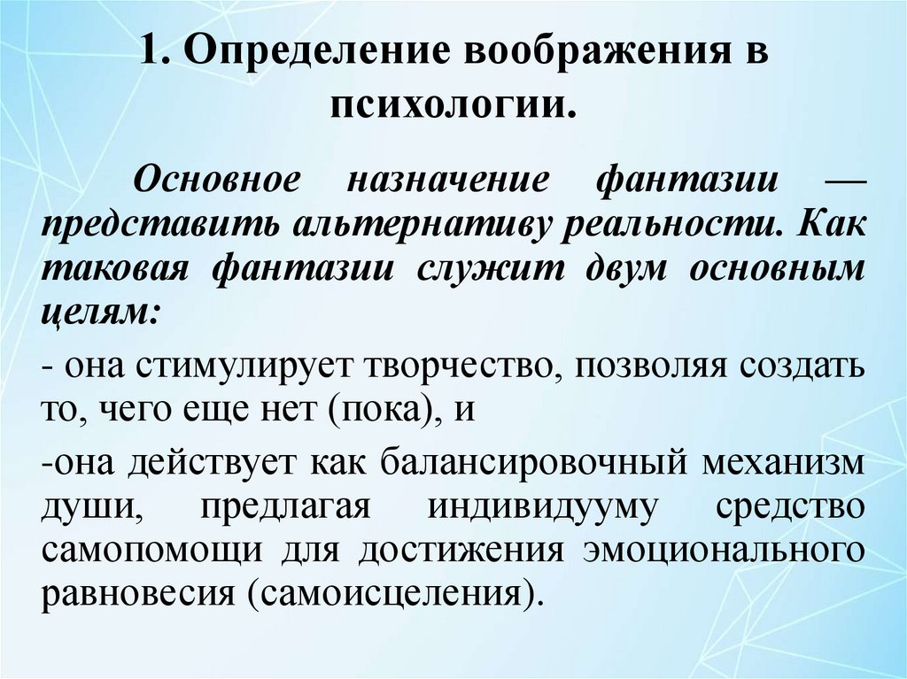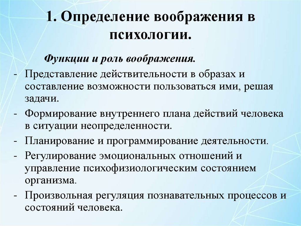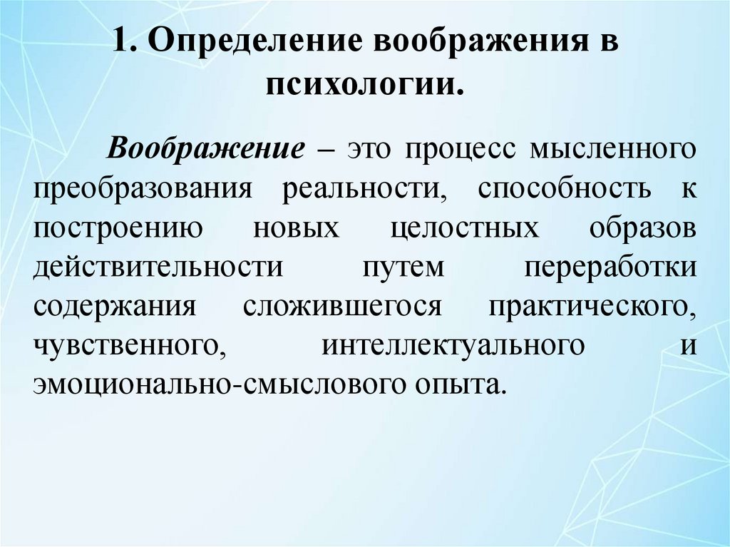 1. ТЕМА : ПОНЯТИЕ О ВООБРАЖЕНИИ