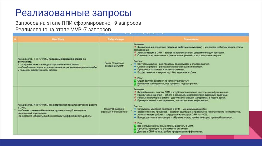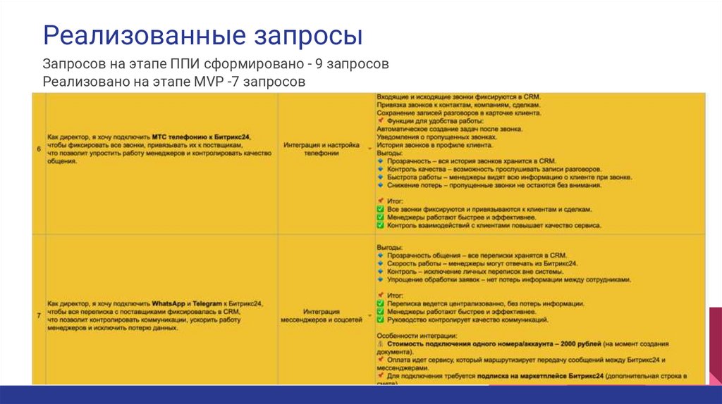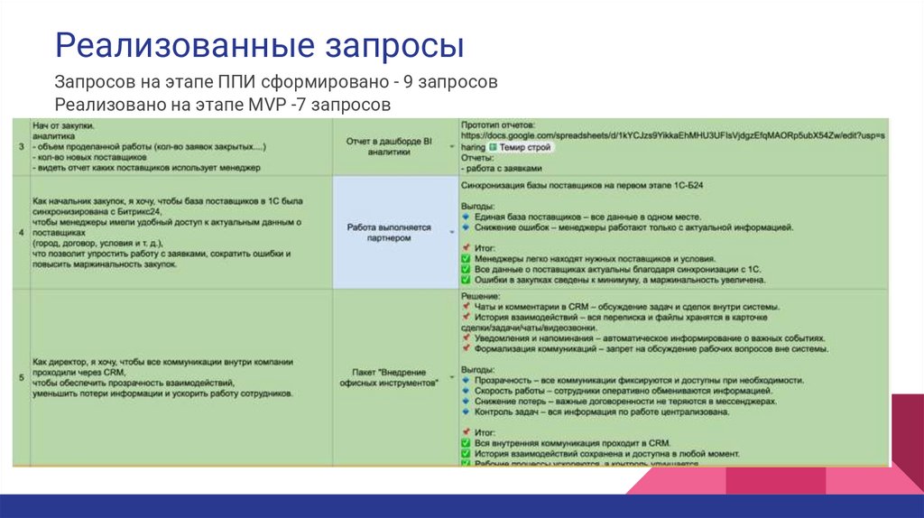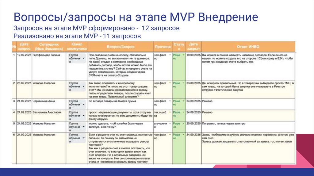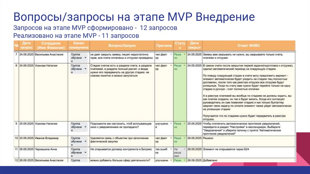 Вопросы/запросы на этапе MVP ВнедрениеЗапросов на этапе MVP сформировано - 12 запросов