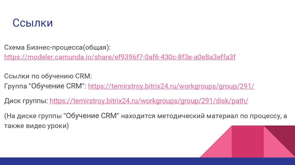(На диске группы “Обучение CRM” находится методический материал по процессу, а