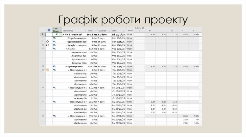 •Розробити архітектуру системи, включно з базою даних, ролями користувачів та