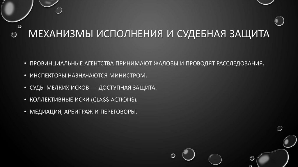 МЕХАНИЗМЫ ИСПОЛНЕНИЯ И СУДЕБНАЯ ЗАЩИТА• ПРОВИНЦИАЛЬНЫЕ АГЕНТСТВА ПРИНИМАЮТ ЖАЛОБЫ И ПРОВОДЯТ РАССЛЕДОВАНИЯ.