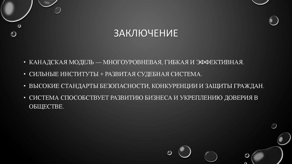 ЗАКЛЮЧЕНИЕ• КАНАДСКАЯ МОДЕЛЬ — МНОГОУРОВНЕВАЯ, ГИБКАЯ И ЭФФЕКТИВНАЯ.