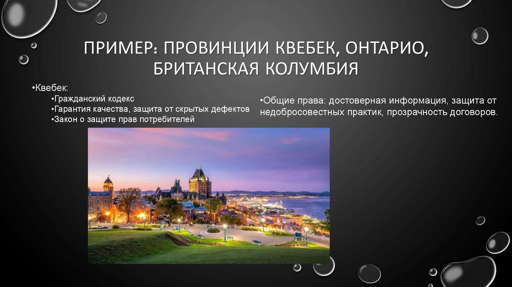 ПРИМЕР: ПРОВИНЦИИ КВЕБЕК, ОНТАРИО,БРИТАНСКАЯ КОЛУМБИЯ