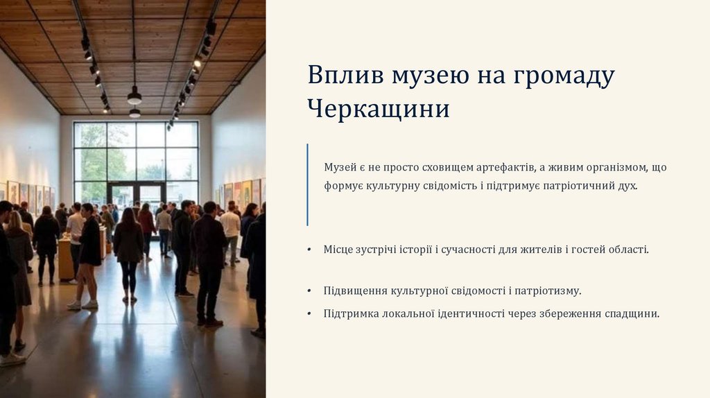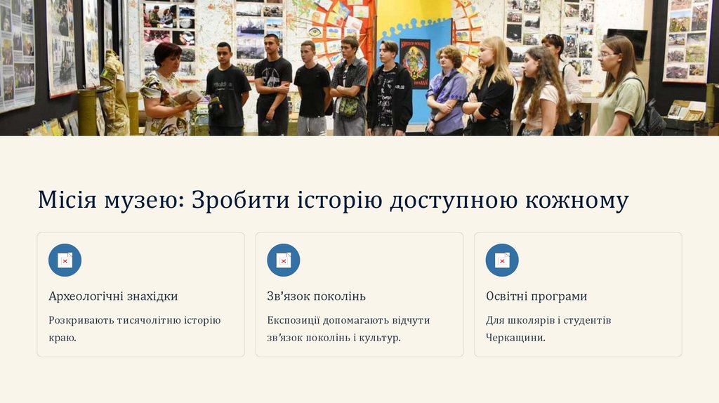 Музей є не просто сховищем артефактів, а живим організмом, що