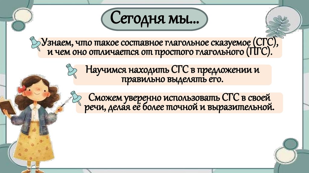 Сегодня мы…Узнаем, что такое составное глагольное сказуемое (СГС),