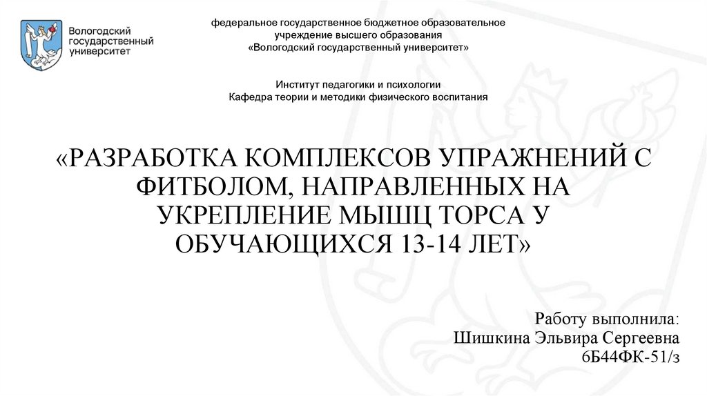 1. «РАЗРАБОТКА КОМПЛЕКСОВ УПРАЖНЕНИЙ С ФИТБОЛОМ, НАПРАВЛЕННЫХ НА УКРЕПЛЕНИЕ МЫШЦ ТОРСА У ОБУЧАЮЩИХСЯ 13-14 ЛЕТ»