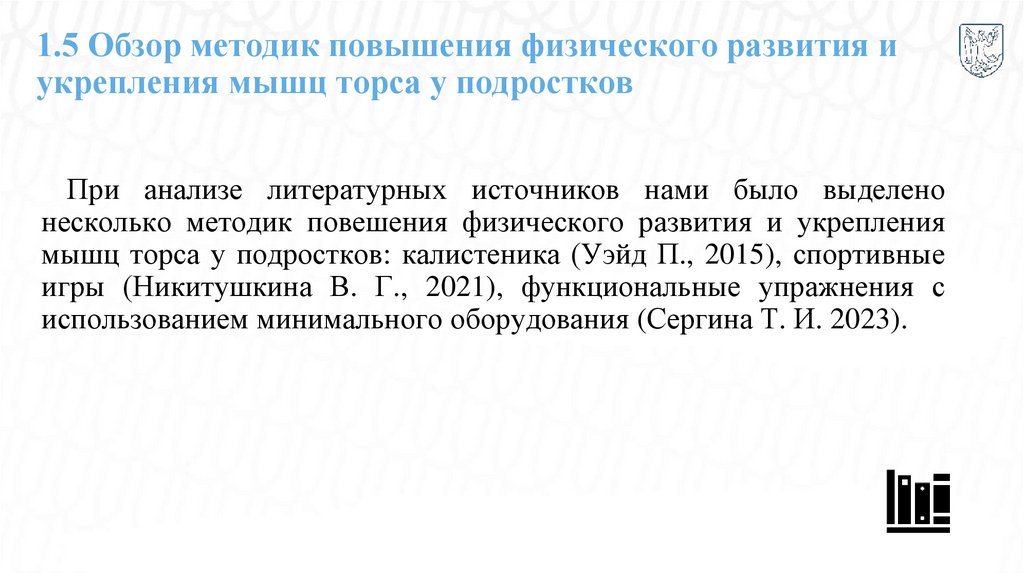12. 1.5 Обзор методик повышения физического развития и укрепления мышц торса у подростков
