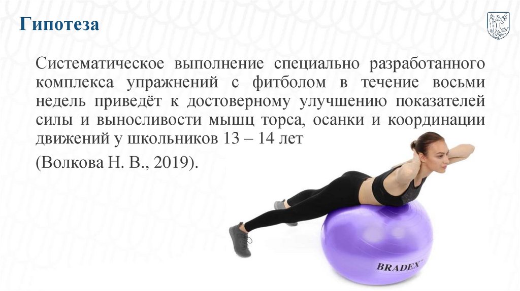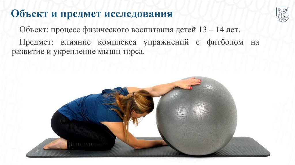 Объект: процесс физического воспитания детей 13 – 14 лет.Предмет: влияние комплекса упражнений с фитболом на