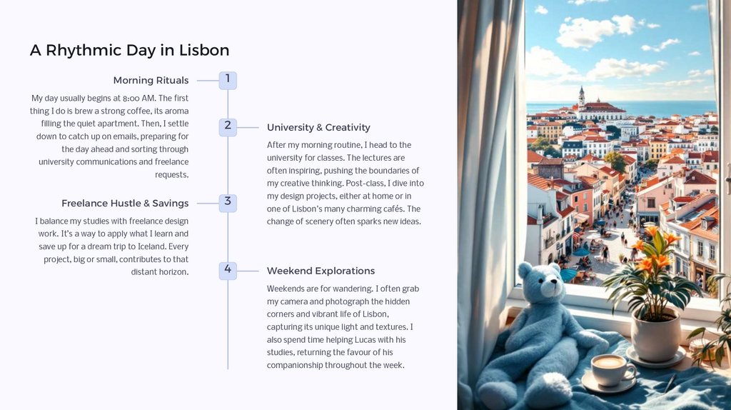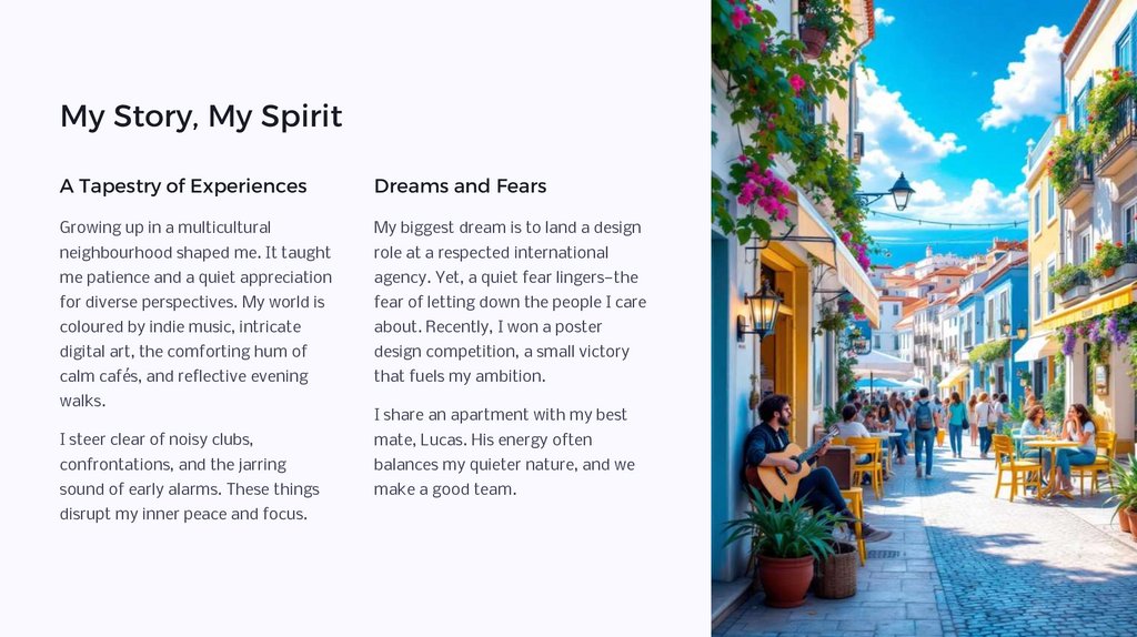 design student from Lisbon. Life here is a vibrant tapestry of cultures, and I try