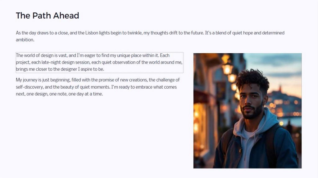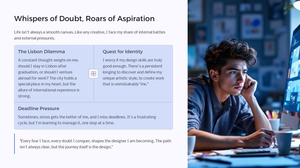 "Every fear I face, every doubt I conquer, shapes the designer I am becoming. The path