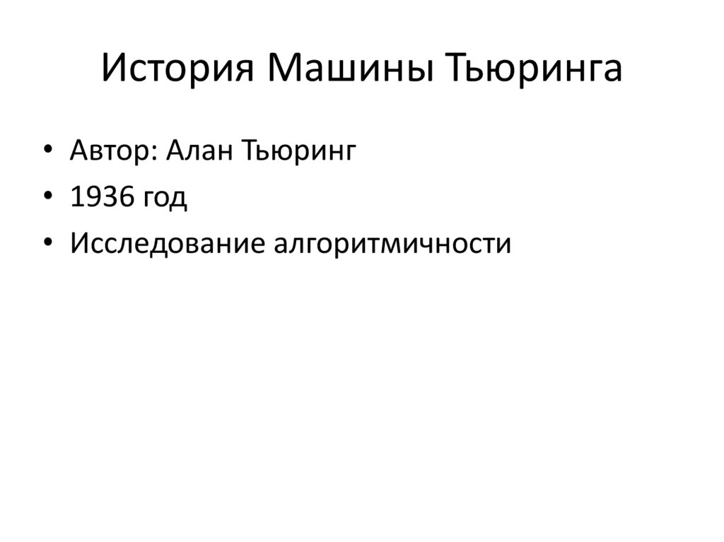 История Машины Тьюринга• Автор: Алан Тьюринг
