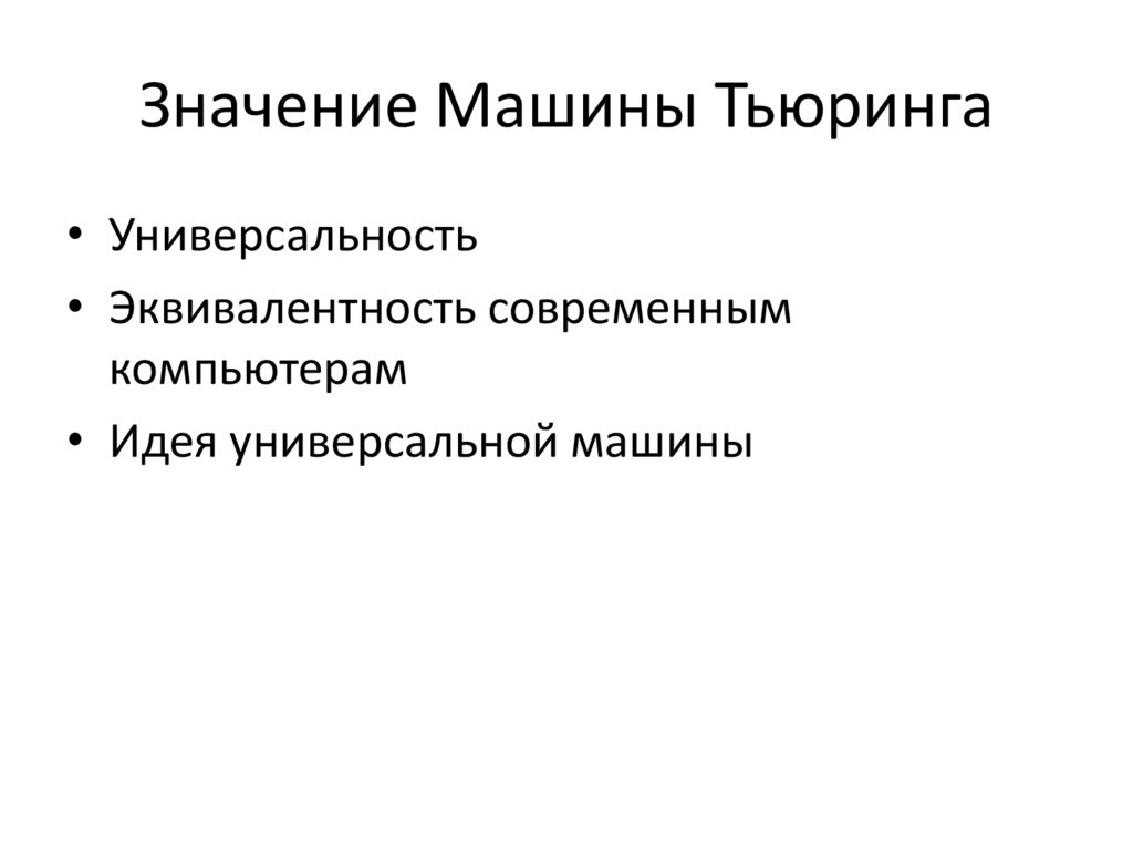 Значение Машины Тьюринга• Универсальность