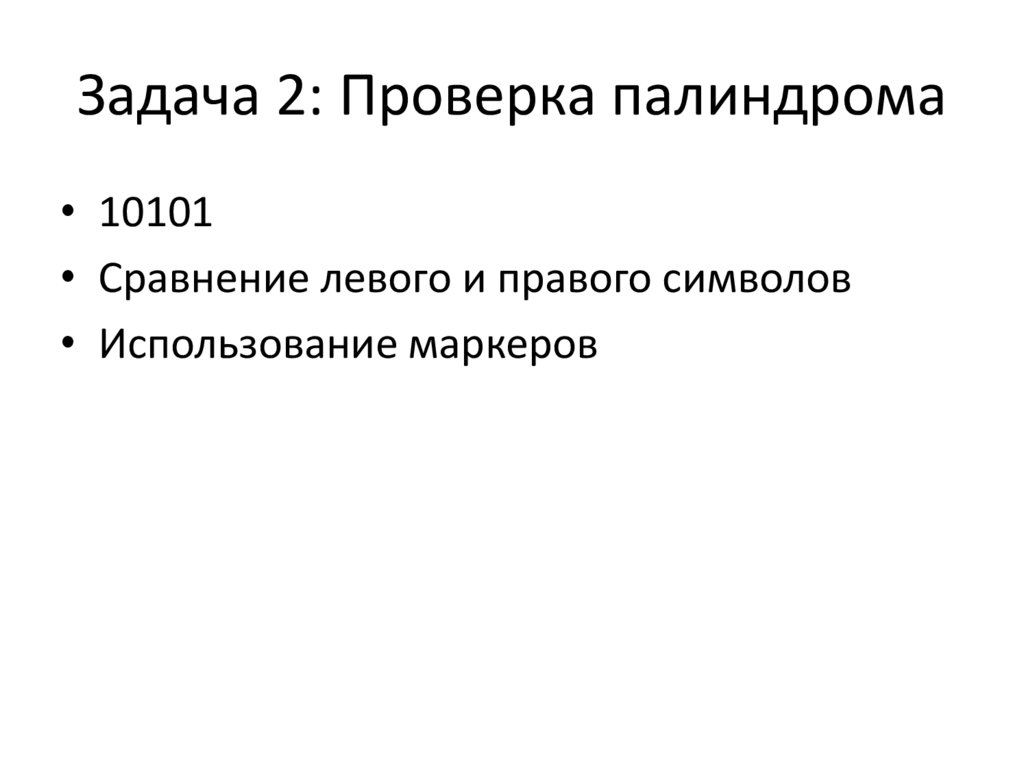 Задача 2: Проверка палиндрома• 10101