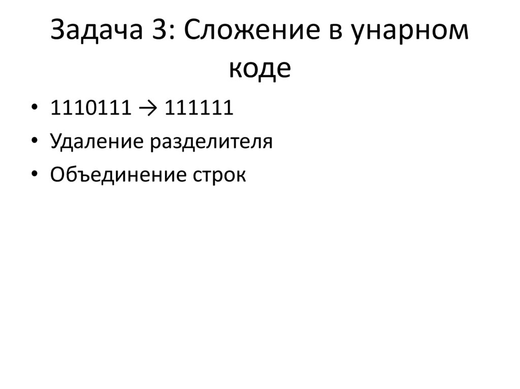 Задача 3: Сложение в унарномкоде
