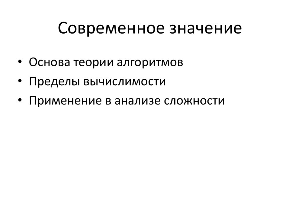 Современное значение• Основа теории алгоритмов