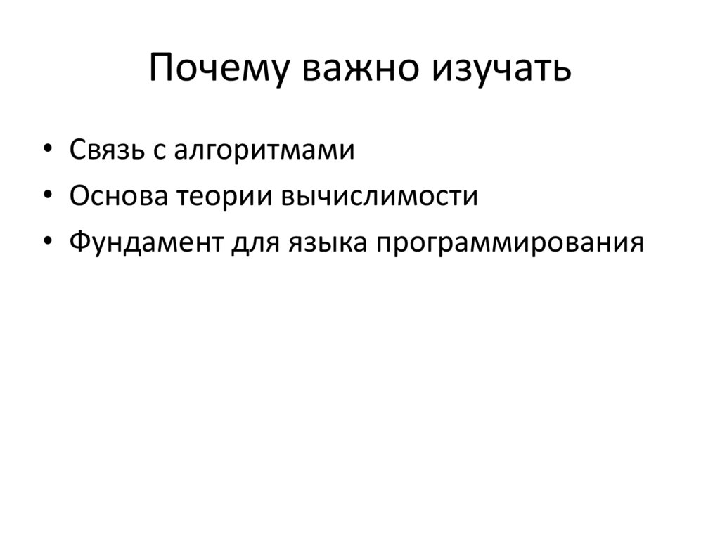 Почему важно изучать• Связь с алгоритмами