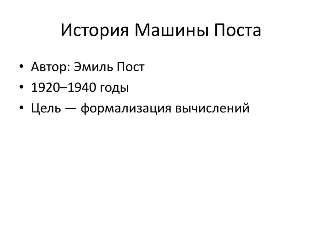История Машины Поста• Автор: Эмиль Пост