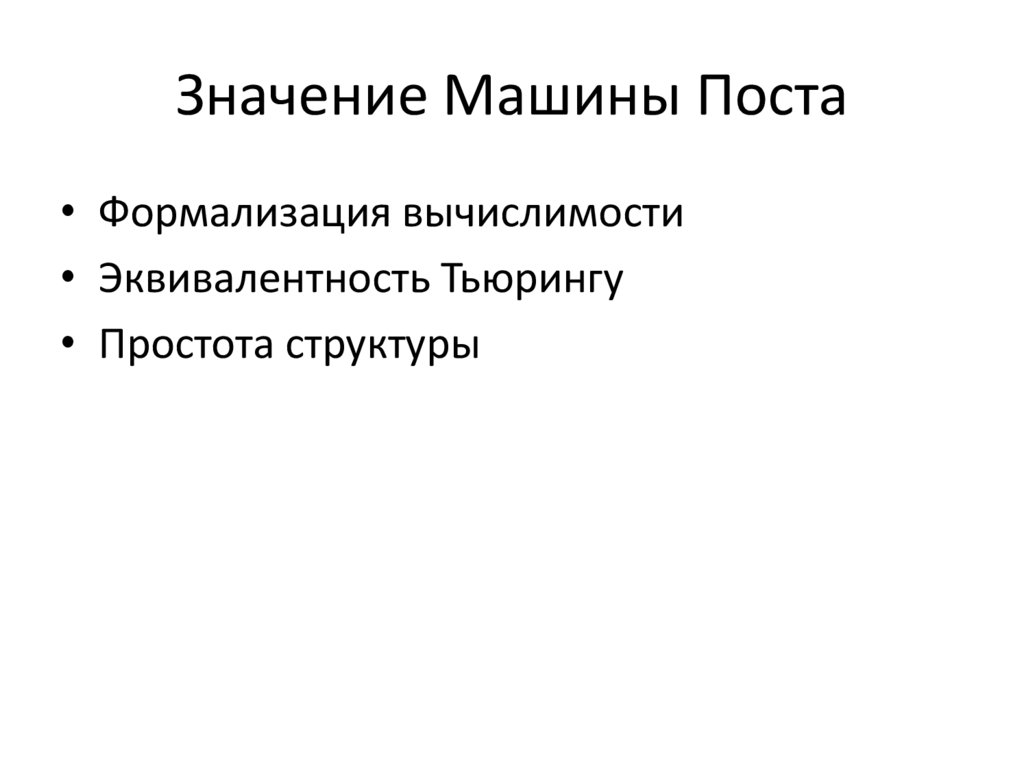 Значение Машины Поста• Формализация вычислимости