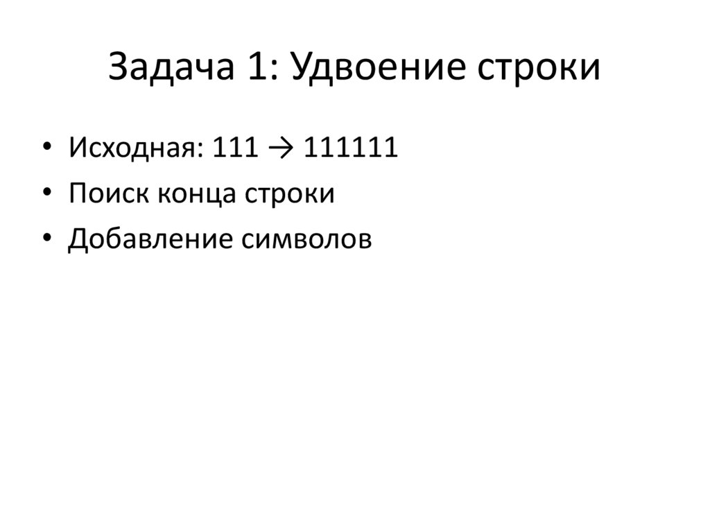 Задача 1: Удвоение строки• Исходная: 111 → 111111