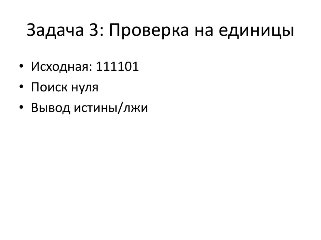 Задача 3: Проверка на единицы• Исходная: 111101