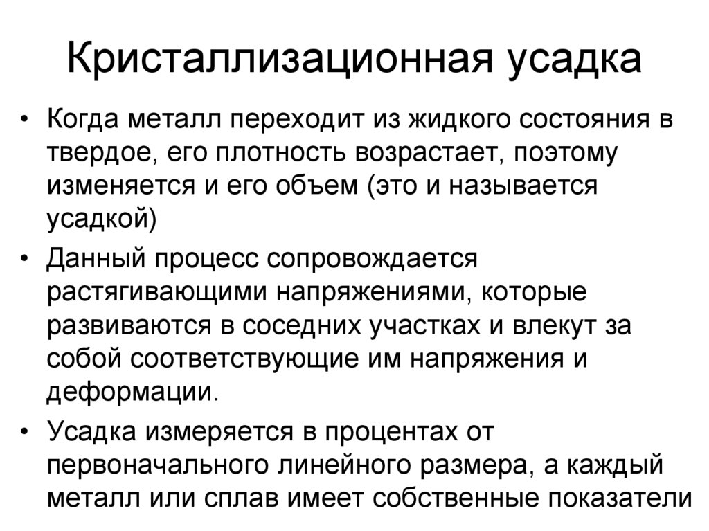 • Когда металл переходит из жидкого состояния втвердое, его плотность возрастает, поэтому