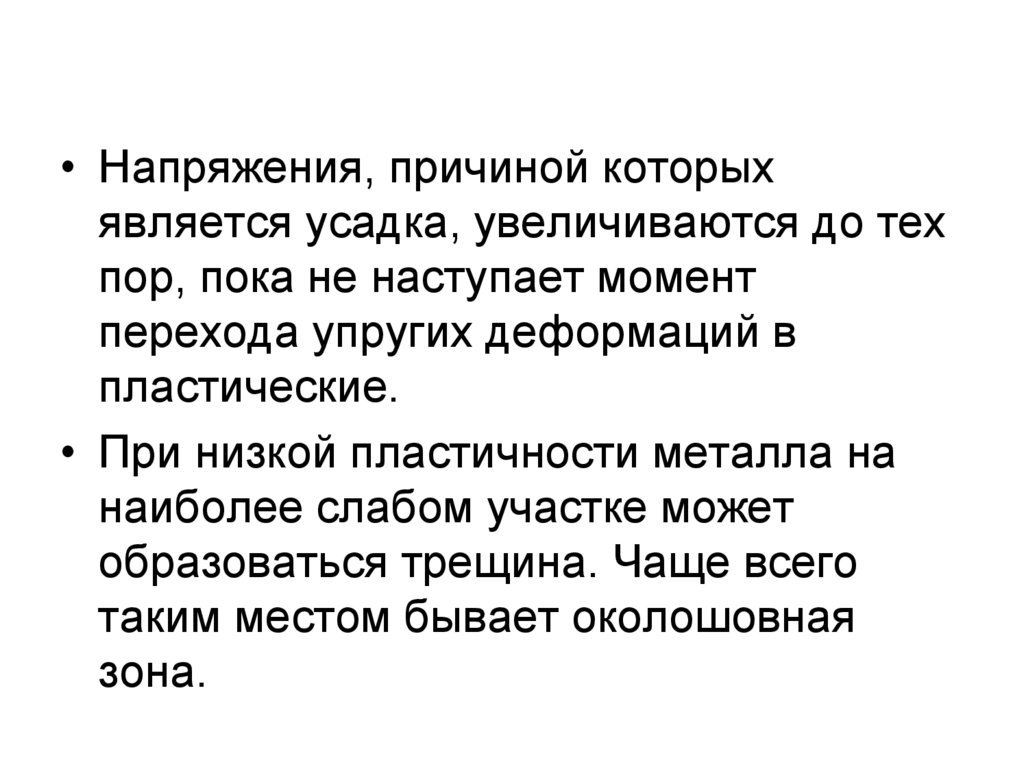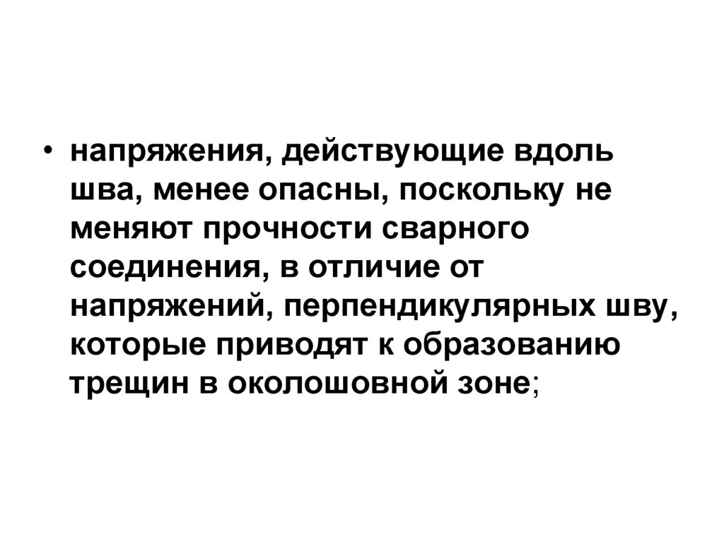 • напряжения, действующие вдольшва, менее опасны, поскольку не