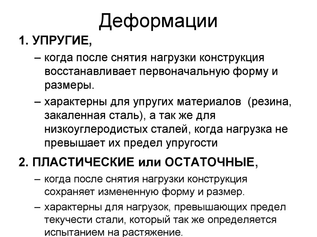 1. УПРУГИЕ,– когда после снятия нагрузки конструкция