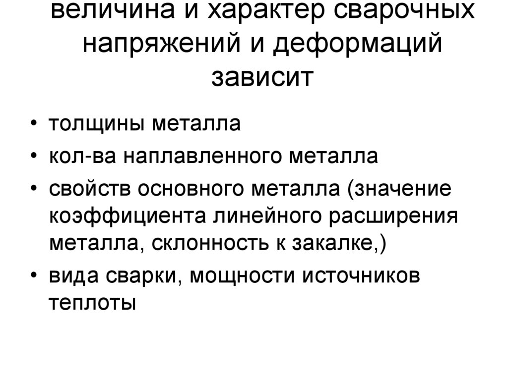 • От чего зависит величина и характерсварочных напряжений и деформаций?