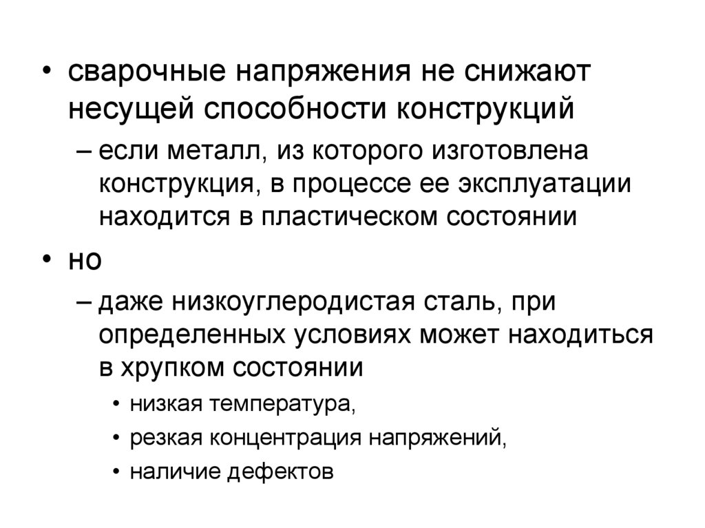 • сварочные напряжения не снижаютнесущей способности конструкций