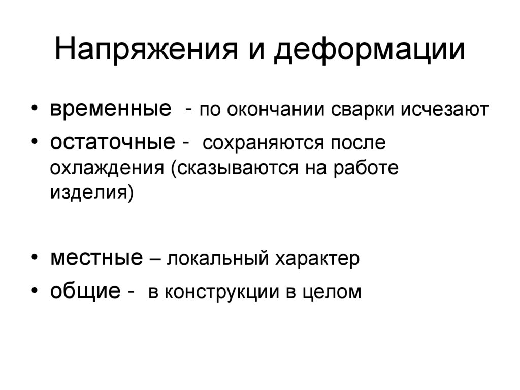 • временные - по окончании сварки исчезают• остаточные - сохраняются после