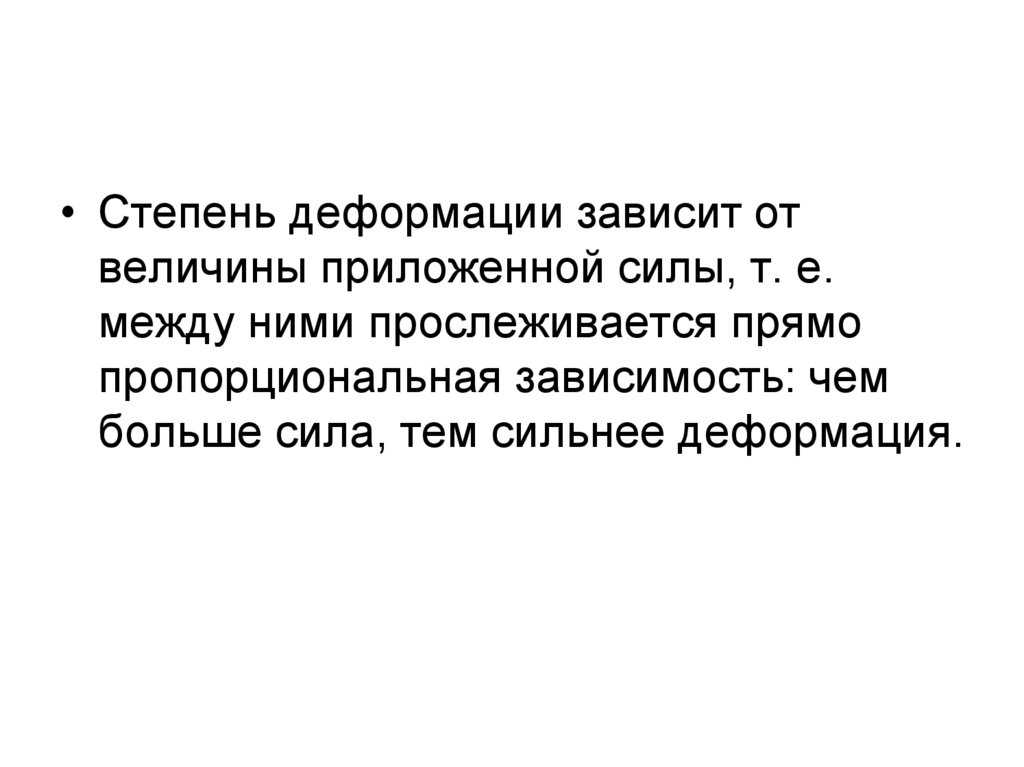 • Степень деформации зависит отвеличины приложенной силы, т. е.
