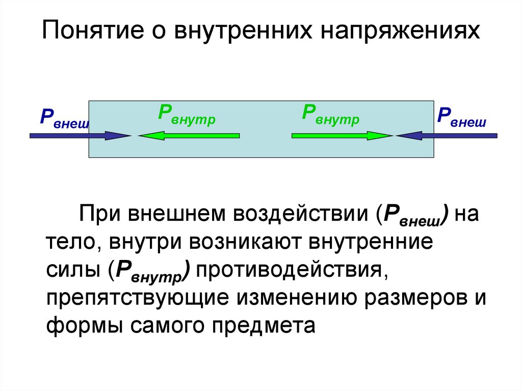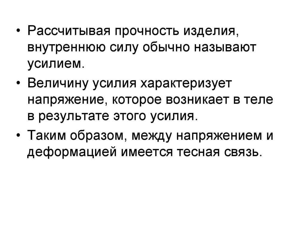 • Рассчитывая прочность изделия,внутреннюю силу обычно называют