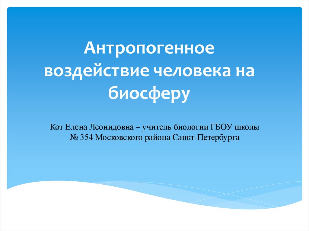 Кот Елена Леонидовна – учитель биологии ГБОУ школы№ 354 Московского района Санкт-Петербурга