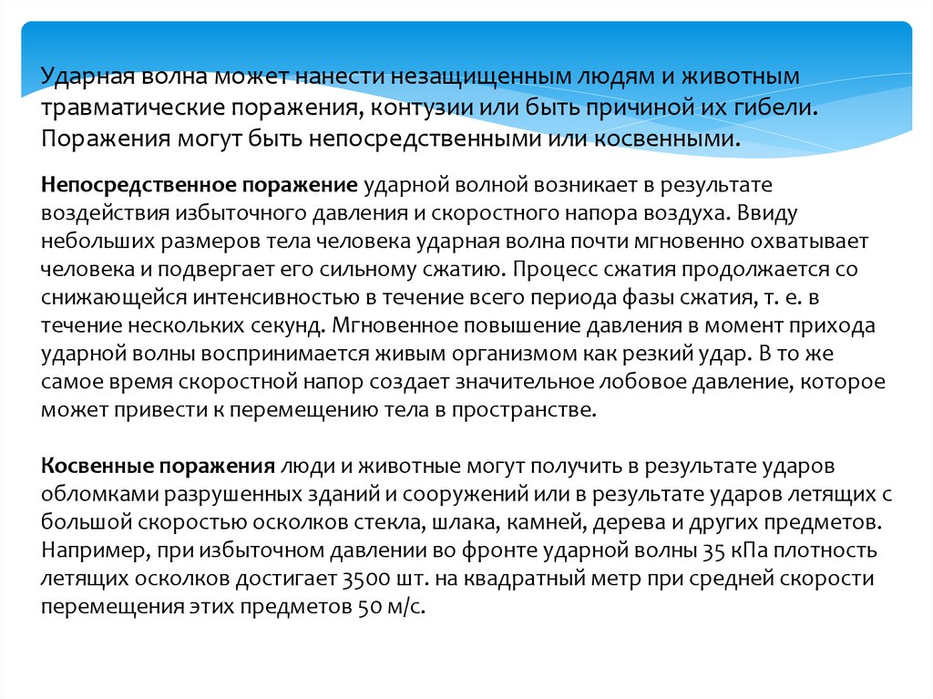 ударной волны воспринимается живым организмом как резкий удар. В то же