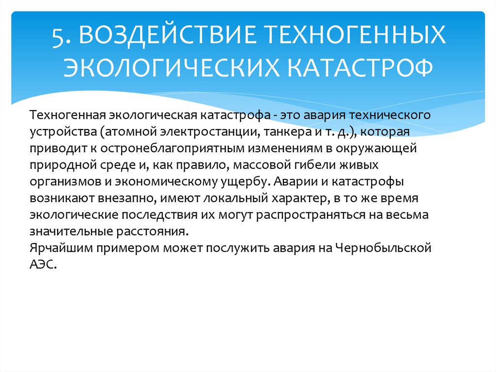 10. 5. ВОЗДЕЙСТВИЕ ТЕХНОГЕННЫХ ЭКОЛОГИЧЕСКИХ КАТАСТРОФ