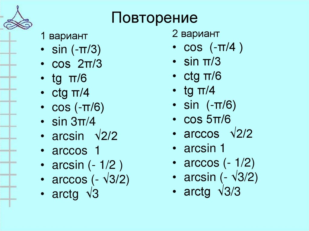 • 2. Различать типы тригонометрических